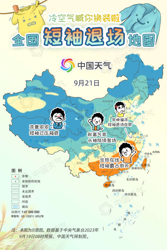 中國天氣網(wǎng)訊 進(jìn)入9月中旬,冷空氣變“勞?!鳖l繁來襲,西北、東北大部都已邁入秋天門檻,但華北一帶今年秋天似乎來得有點兒晚,南方地區(qū)白天甚至熱到還要開空調(diào),不少網(wǎng)友喊話“秋高氣爽何時能來?”今起三天(9月19日至21日),受冷空氣和降雨共同影響,長江以北大部地區(qū)將陸續(xù)迎來降溫,開啟秋日初體驗。中國天氣網(wǎng)特別推出全國短袖退場地圖,看看哪里可以安排秋天的第一件長袖。