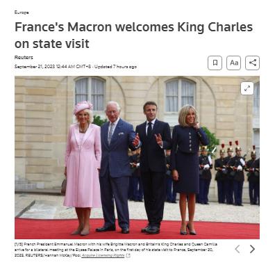 中新網(wǎng)9月21日電 綜合法新社、路透社報(bào)道,當(dāng)?shù)貢r(shí)間20日,英國(guó)國(guó)王查爾斯三世抵達(dá)法國(guó),進(jìn)行自其登基后為期三天的首次國(guó)事訪問(wèn)。