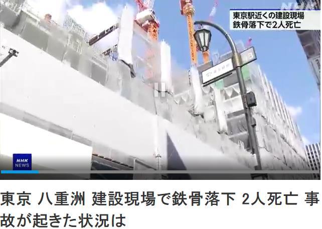 據(jù)報道,事故發(fā)生于當天上午9時20分左右,事故發(fā)生現(xiàn)場是一棟商業(yè)綜合體大樓的建設(shè)工地,距離JR東京車站八重洲口約200米。
