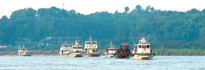 瀾滄江—湄公河從中國(guó)關(guān)累到泰國(guó)清盛一段航運(yùn)最為繁忙,大量物資在中老緬泰四國(guó)間運(yùn)輸往來(lái)。裝滿(mǎn)貨物的各國(guó)商船在水面上來(lái)回穿梭,一片繁忙;兩岸村莊升起裊裊炊煙,一片祥和。長(zhǎng)期在湄公河上跑船的一名船長(zhǎng)說(shuō):“有聯(lián)合巡邏執(zhí)法編隊(duì)在,我們跑船很放心。感謝四國(guó)聯(lián)合巡邏執(zhí)法為湄公河帶來(lái)了安寧!”