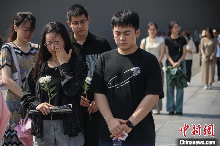 9月18日,在防空警報(bào)聲中,侵華日軍南京大屠殺遇難同胞紀(jì)念館中的參觀者駐足默哀?!°蟛?攝