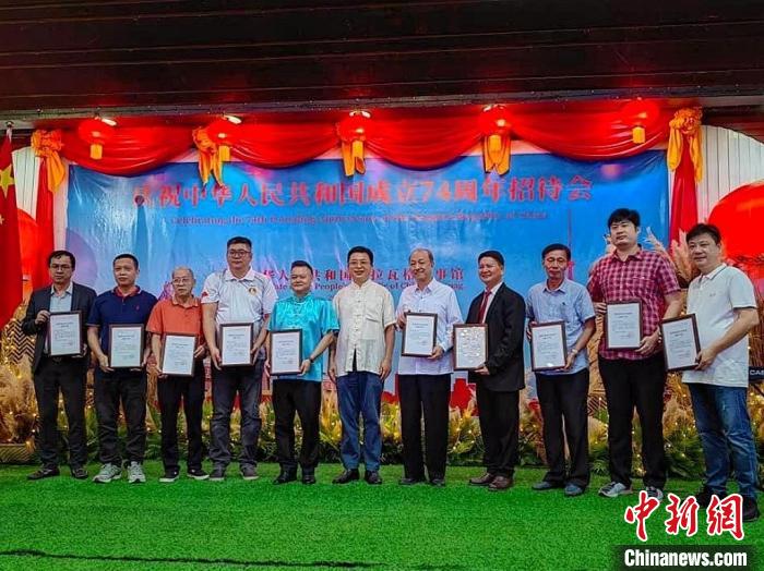 圖為招待會現(xiàn)場舉行領事保護志愿者頒獎儀式。中國駐拉瓦格領事館供圖
