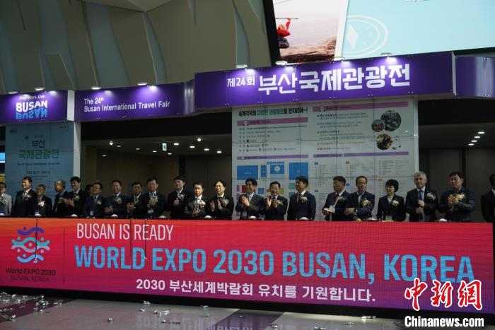 10月5日,第24屆釜山國(guó)際旅游展在韓國(guó)釜山國(guó)際會(huì)展中心開(kāi)幕。圖為旅游展開(kāi)幕式。中新社記者 劉旭 攝