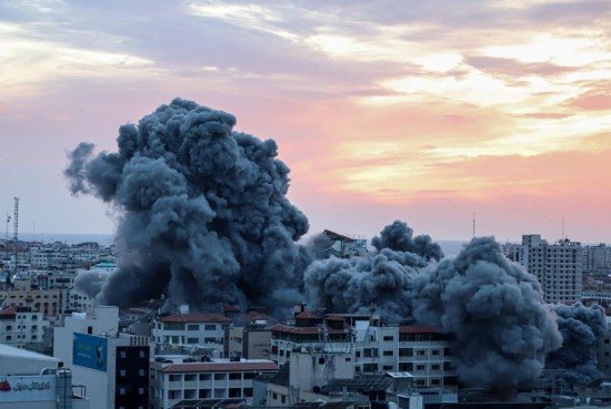 這是10月7日在加沙城拍攝的以色列軍隊(duì)空襲后濃煙滾滾的場面。(新華社發(fā),里澤克·阿卜杜勒賈瓦德攝)