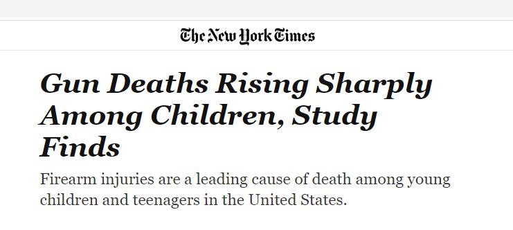 文章援引“槍支暴力檔案”(Gun Violence Archive)的數(shù)據(jù)稱,今年到目前為止,美國(guó)已有1300多名兒童和青少年死于槍支,而美國(guó)疾病控制與預(yù)防中心(CDC)在4月份發(fā)現(xiàn),在2019年至2021年的短短兩年內(nèi),兒童涉槍死亡人數(shù)上升了50%。