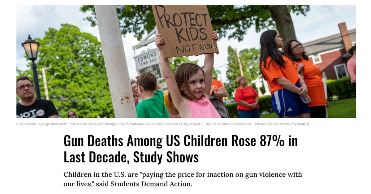 文章表示,在過(guò)去的十年里,美國(guó)共和黨議員和槍支游說(shuō)團(tuán)體竭盡全力反對(duì)在美國(guó)減少槍支獲取并確保兒童遠(yuǎn)離槍支的提議,而死于槍支暴力的兒童人數(shù)幾乎翻了一番,在2011年至2021年間增長(zhǎng)了87%。