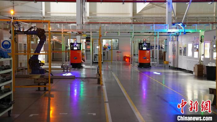 中新社記者近日探訪位于浙江嘉興的敏實(shí)集團(tuán),在其未來(lái)工廠里,機(jī)器人于“熄燈車間”來(lái)回穿梭?!≈行律缬浾?楊程晨 攝