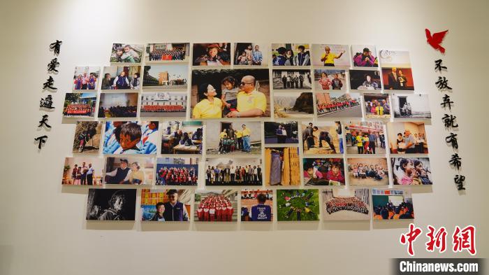 在秦榮華家中的墻上,掛著他過(guò)去30多年來(lái)在大陸各地走訪、參與公益、推動(dòng)兩岸交流的照片?!≈行律缬浾?楊程晨 攝