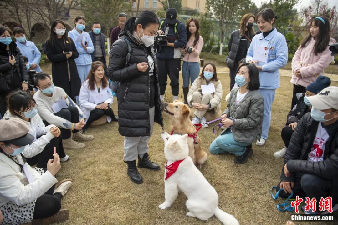 2023年2月9日,成都市心理健康中心開展動物輔助團體治療,該中心將治療犬只應用于精神科心理治療。劉忠俊 攝