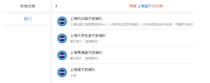 “藍(lán)天救援·中國(guó)”官網(wǎng)品牌授權(quán)隊(duì)伍查詢中,上海藍(lán)天旗下分類有4支隊(duì)伍