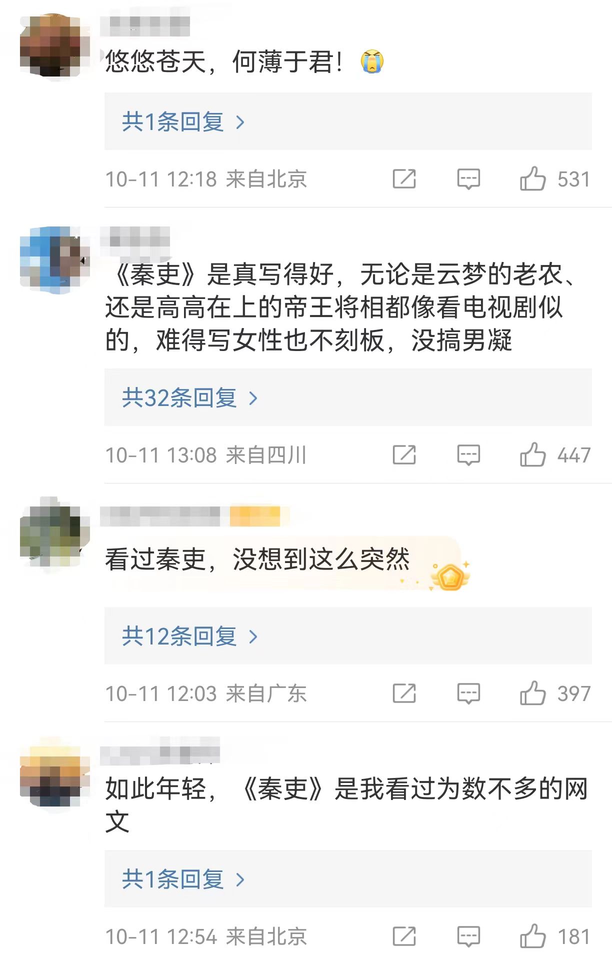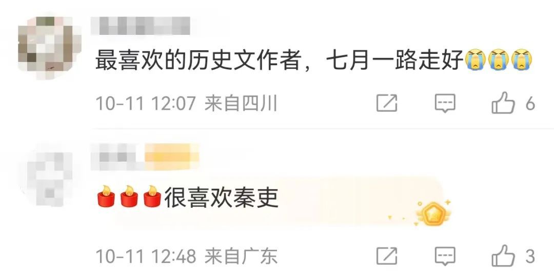 閱文集團發(fā)布的訃告里寫道:“七月新番一生赤誠,專注。他有志于循中國歷史脈絡(luò),由遠及近,針對各個歷史時期完成相應(yīng)的故事創(chuàng)作。為此,他嚴謹推敲,細致考據(jù),從極少作家涉足的春秋戰(zhàn)國題材起筆,扎實書寫秦、漢故事。他所塑造的黑夫、任弘、第五倫等角色,燦爛鮮活,引讀者共鳴、共情,如今中斷于三國篇,我們深感悲痛、遺憾?!?/p>