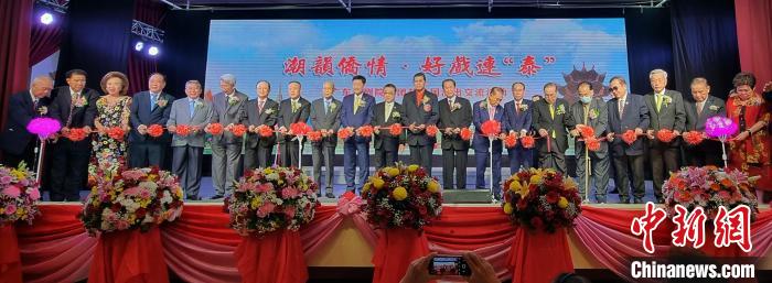 為隆重慶祝泰中建交48周年,泰國文化部、泰國潮劇公會(huì)聯(lián)合舉辦"鄉(xiāng)音連僑心"潮劇晚會(huì),13日晚潮劇會(huì)開幕和首演,圖為與會(huì)嘉賓為晚會(huì)開幕剪彩。鄭友宜 攝