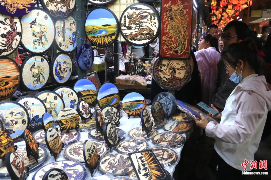 游客在敦煌夜市選購泥板畫。張曉亮 攝