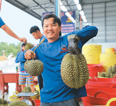 “榴蓮種植面積每年都在增長,一些橡膠、棕櫚園紛紛改種榴蓮,因?yàn)橹袊袌鼍薮?,采購量逐年遞增。以前每公斤榴蓮只能賣三四十泰銖,賣到80泰銖果農(nóng)就高興得不得了,可這兩年漲到了一百三四十泰銖,中國節(jié)日期間甚至漲到180泰銖?!碧﹪喜苛裆弲f(xié)會會長西立告訴記者,“以前果農(nóng)的日子不好過,很多年輕人不愿做果園生意,但現(xiàn)在不少果農(nóng)后代在大學(xué)畢業(yè)后都選擇返回家鄉(xiāng),用知識發(fā)展果園?!?/p>