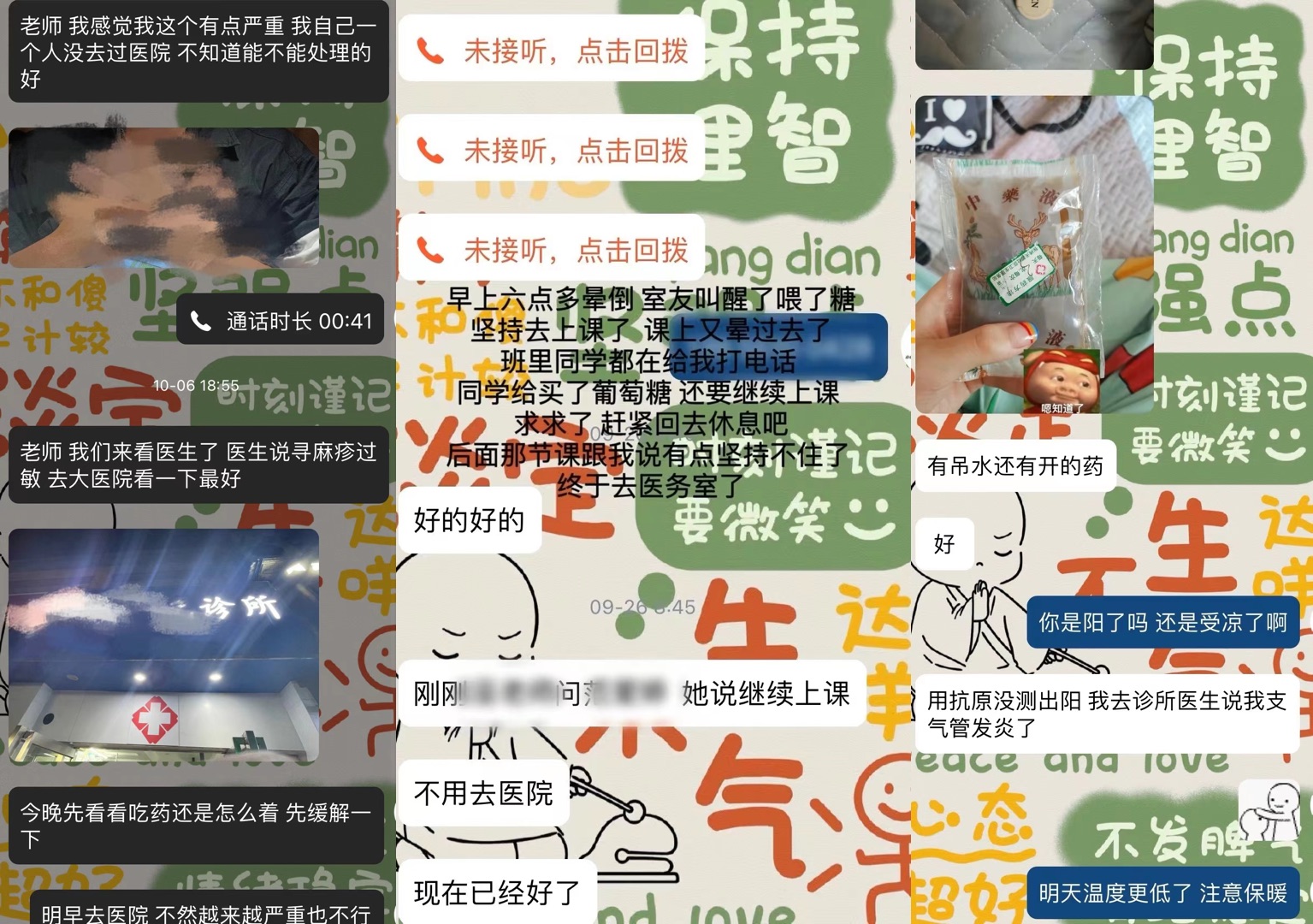 每周都會(huì)有因生病請(qǐng)假的大學(xué)生。受訪者供圖