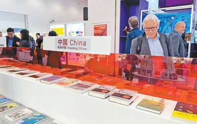 在中國聯(lián)合展臺(tái),《習(xí)近平著作選讀》第一卷、第二卷,《習(xí)近平談治國理政》第一至四卷多語種版和“足跡”系列圖書等被擺放在中心位置,吸引大批讀者閱覽。