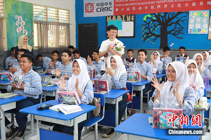 當(dāng)天,雅萬高鐵動(dòng)車組科普文化交流基地公益課堂進(jìn)校園暨教學(xué)物資捐贈(zèng)交接儀式在該中學(xué)舉行,中車四方股份公司向?qū)W校捐贈(zèng)了電腦、音響系統(tǒng)等教學(xué)物資。作為中國高鐵技術(shù)專家,中車四方雅萬高鐵動(dòng)車組主任設(shè)計(jì)師張方濤走進(jìn)教室,為學(xué)生們帶來高鐵科普課,講解雅萬高鐵的先進(jìn)科技。