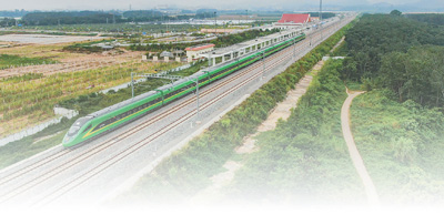 10月22日,動(dòng)車從中老鐵路橄欖壩站駛出(無(wú)人機(jī)照片)。
