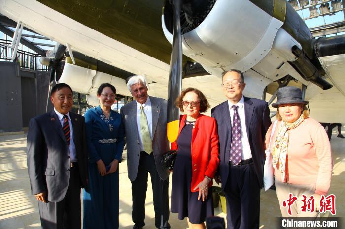 捐贈儀式結(jié)束后,與會嘉賓共同參觀飛機館。辛西婭·陳納德看到曾在駝峰航線使用過的C-47運輸機時,她興致勃勃地爬上駕駛艙,并與美國飛虎隊歷史委員會總裁拉里·林恩·喬布一起向嘉賓揮手示意。