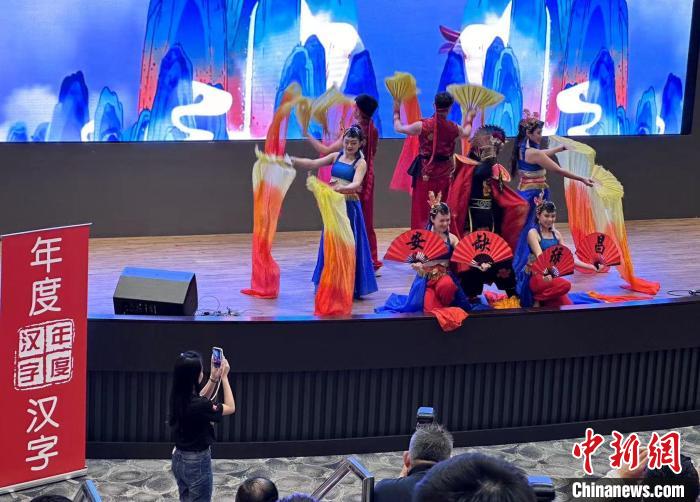 主辦方以“變臉”表演一一展示十大漢字。記者陳悅攝