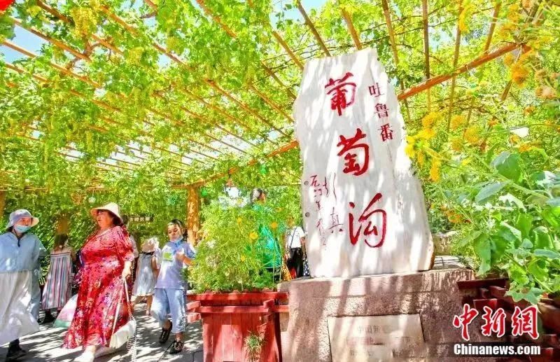 葡萄溝內(nèi)流水潺潺、綠樹成蔭