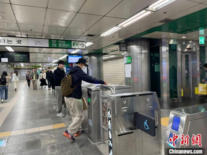 當?shù)貢r間9日,市民在首爾地鐵新村站刷卡進站。萬佳欣 攝