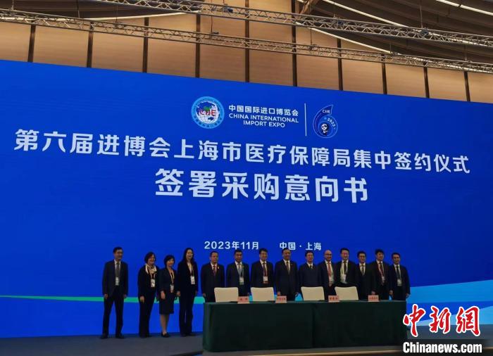 11月8日,上海市醫(yī)療保障局在第六屆進(jìn)博會(huì)現(xiàn)場(chǎng)舉行部分帶量采購(gòu)中選藥品和高值醫(yī)用耗材采購(gòu)意向集中簽約儀式暨醫(yī)保政策政企交流會(huì)。上海市醫(yī)保局供圖