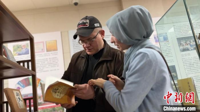 11月中旬,甘肅中醫(yī)藥大學(xué)俄羅斯留學(xué)生李峰夫婦,在圖書室翻看中醫(yī)相關(guān)書籍?!⊥跄劣?攝