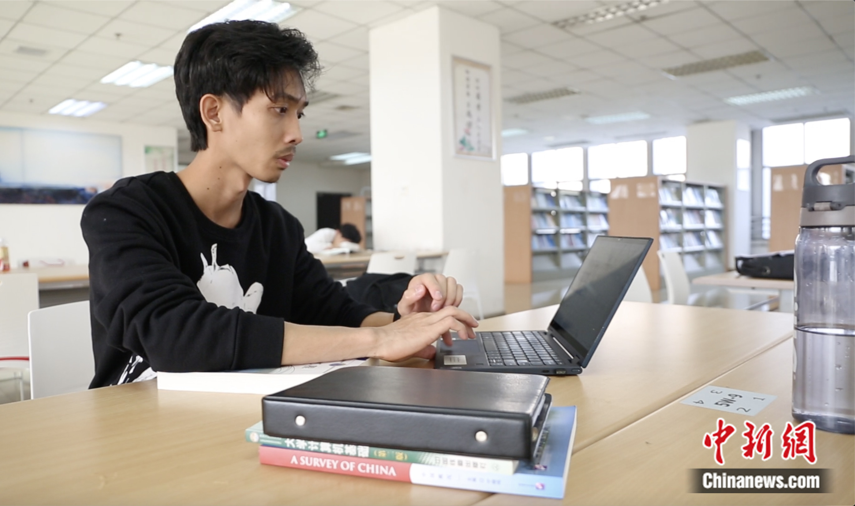 2023年10月,就讀于蘭州交通大學的留學生陳君其正在圖書館里自習。高瑩 攝