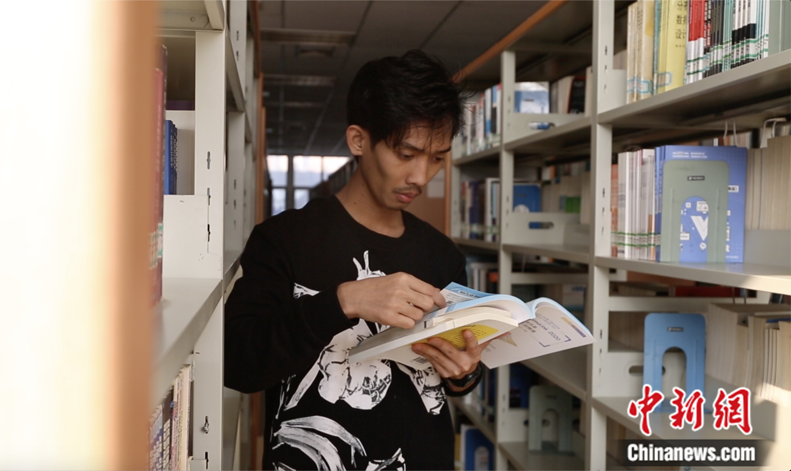 2023年10月,圖為印尼留學生陳君其在圖書館查閱資料。高瑩 攝