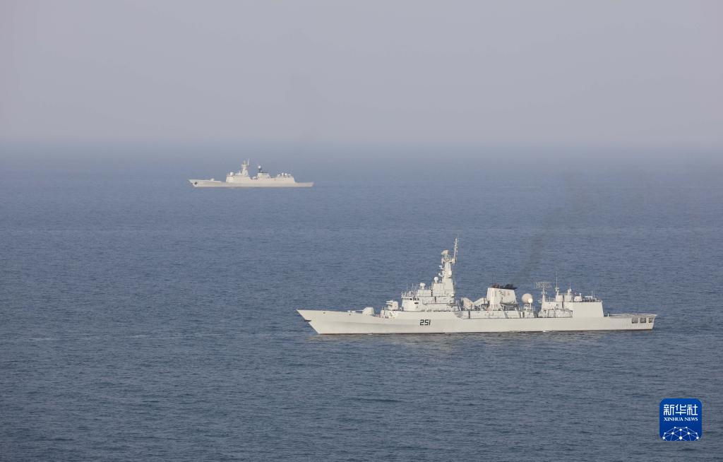中巴“海洋衛(wèi)士-3”海上聯(lián)合演習在阿拉伯海北部??沼蚺e行,雙方艦艇組織編隊運動(11月14日攝)。新華社發(fā)(姜霞攝)