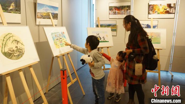 圖為觀眾及小朋友欣賞獲獎(jiǎng)作品展。柏林中國(guó)文化中心供圖