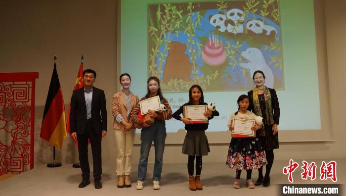 圖為頒獎(jiǎng)嘉賓與一等獎(jiǎng)獲得者合影。柏林中國(guó)文化中心供圖。