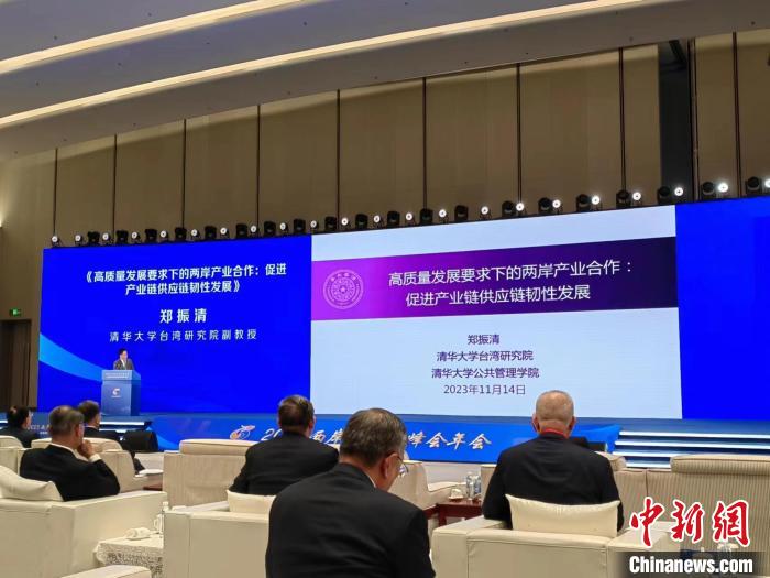 11月14日,清華大學(xué)公共管理學(xué)院、臺(tái)灣研究院副教授鄭振清在兩岸企業(yè)家峰會(huì)10周年年會(huì)上作主題演講。(受訪者供圖)