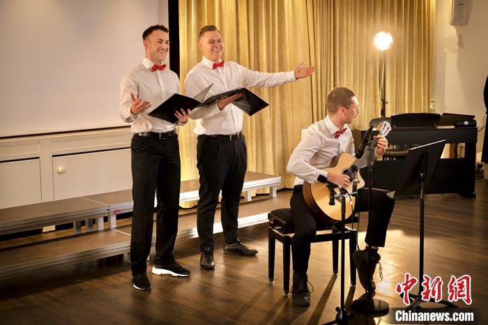 圖為伯樂(lè)中文合唱團(tuán)的三個(gè)男生在唱《一生有你》。王憑 攝