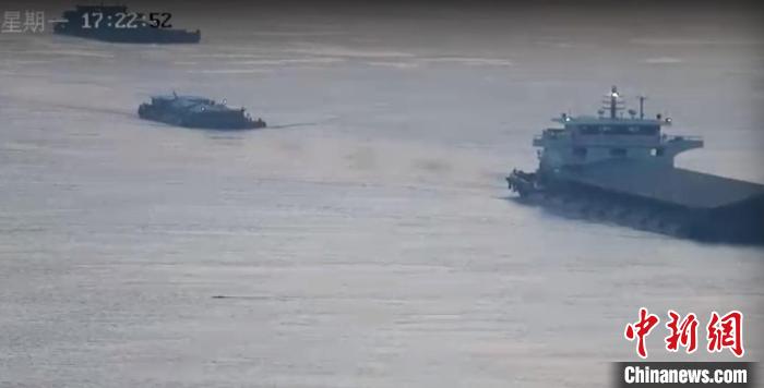 這頭野豬泳姿非常靈活,還主動(dòng)避讓了長江中行駛中的各類船舶。江蘇海事局 供圖