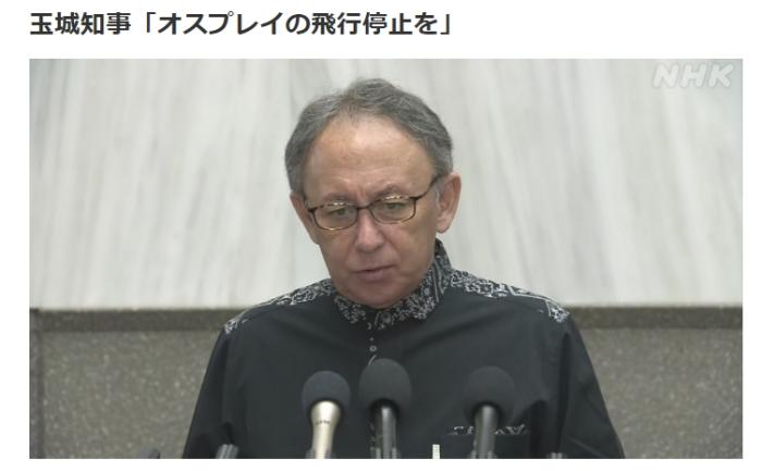 玉城表示,“正因沒(méi)有正視‘魚(yú)鷹’的危險(xiǎn)性,才釀成了如此嚴(yán)重的事故,實(shí)在令人遺憾”,他強(qiáng)調(diào)目前非常擔(dān)心“魚(yú)鷹”在民用區(qū)域和民用機(jī)場(chǎng)起降成為常態(tài),呼吁駐日美軍立即停飛“魚(yú)鷹”,直至安全問(wèn)題徹底解決。
