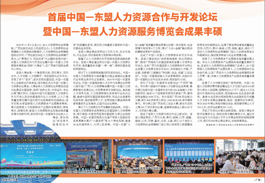 2023年11月3日至4日,由人力資源和社會保障部、廣西壯族自治區(qū)人民政府主辦,人力資源和社會保障部人力資源流動管理司、人力資源和社會保障部國際合作司、廣西壯族自治區(qū)人力資源和社會保障廳承辦,以“聚智匯力 同創(chuàng)共享”為主題的首屆中國—東盟人力資源合作與開發(fā)論壇暨中國—東盟人力資源服務(wù)博覽會(簡稱“人博會”),在廣西南寧國際會展中心舉辦。