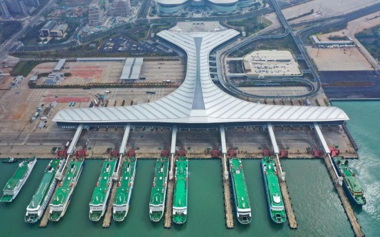 這是海口新海滾裝碼頭客運(yùn)綜合樞紐站項(xiàng)目(11月29日攝,無人機(jī)照片)。新華社記者郭程攝