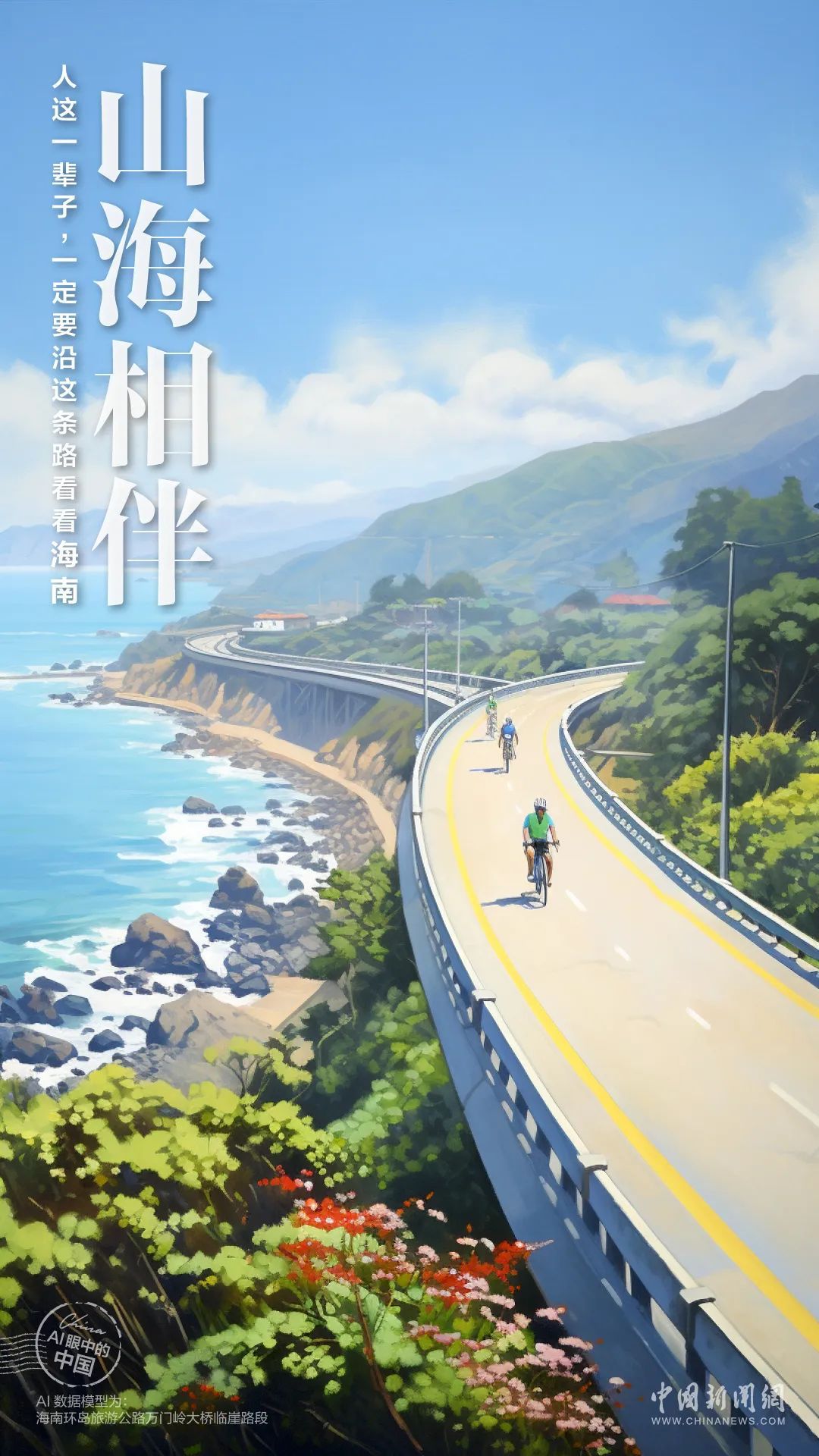 圖為海南環(huán)島旅游公路萬(wàn)門嶺大橋臨崖路段吸引游客騎行打卡。楊師忠 攝