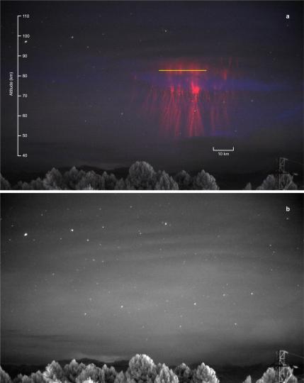 本項(xiàng)研究記錄于2019年9月21日的中層大氣現(xiàn)象(圖片來自論文)。施普林格·自然/供圖