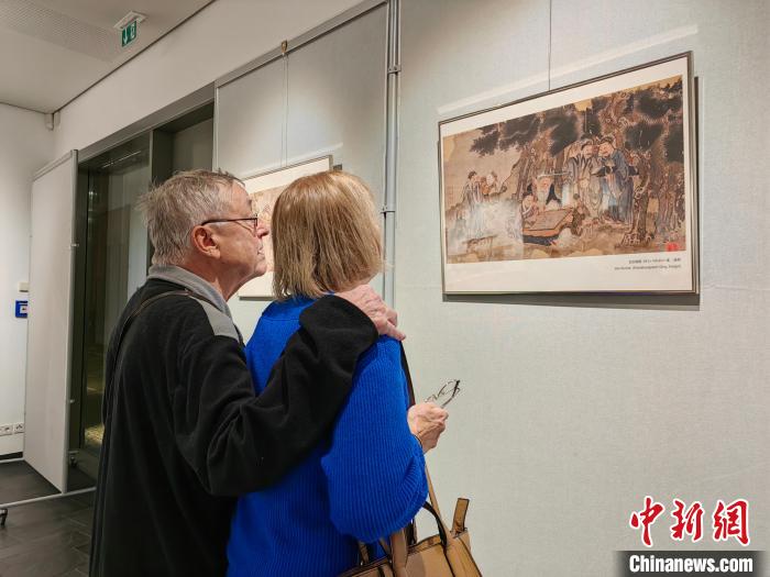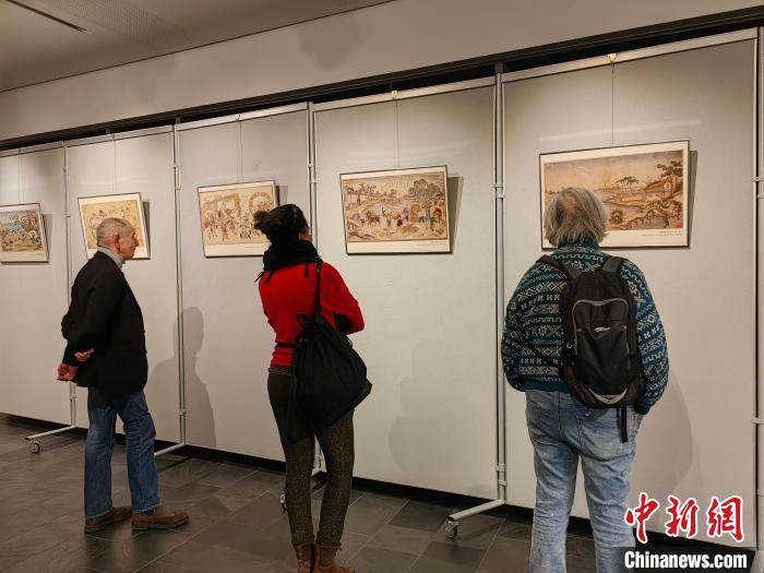 來賓觀賞年畫?!?柏林中國(guó)文化中心供圖)