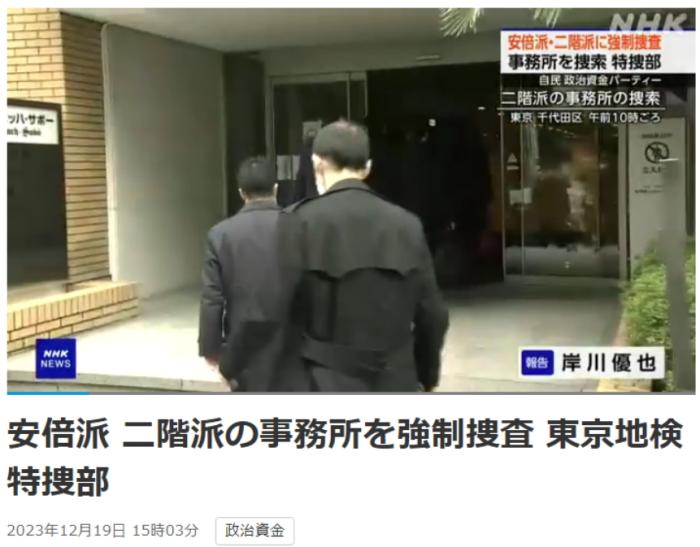 中新網(wǎng)12月19日電 據(jù)日本放送協(xié)會(huì)(NHK)報(bào)道,19日,日本東京地檢特搜部以違反政治資金相關(guān)法規(guī)為由,對(duì)自民黨安倍派(清和政策研究會(huì))和二階派(志帥會(huì))的辦公場所進(jìn)行強(qiáng)制搜查。