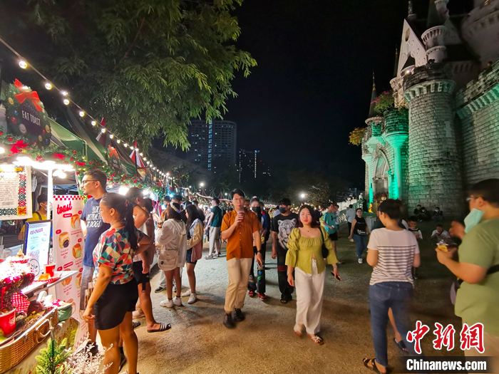 1月1日晚,位于泰國曼谷的網(wǎng)紅打卡點喬德夜市游人如織。 中新社記者 李映民 攝