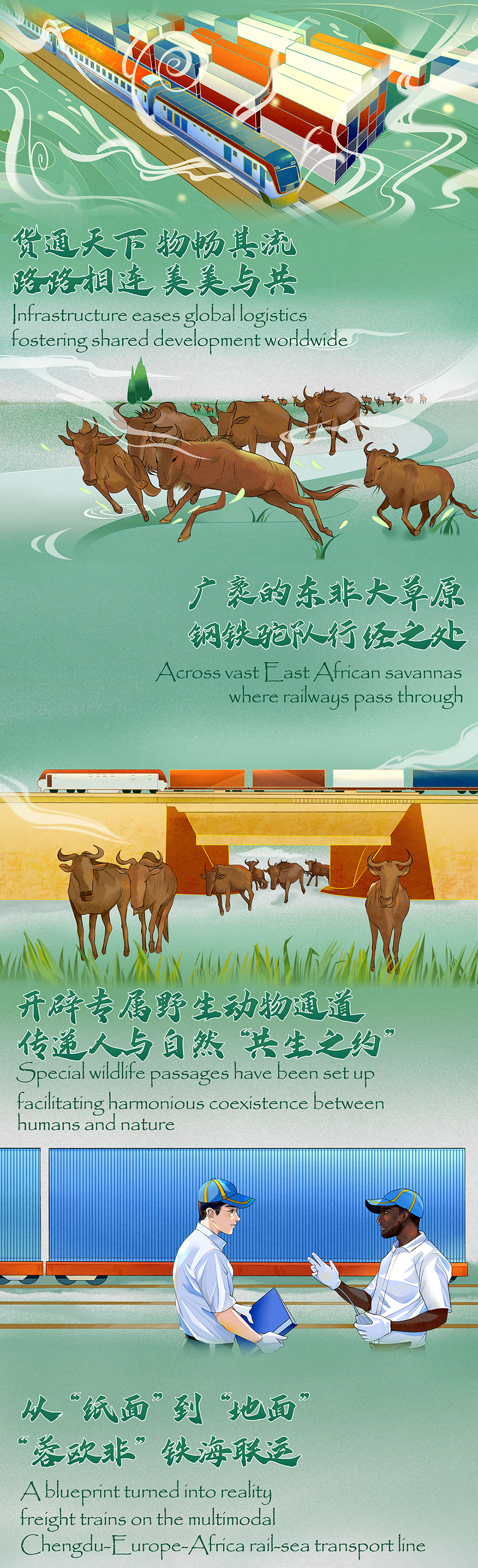 中新網12月29日電 從蒙內鐵路到中歐班列:“一帶一路”倡議跨山越海,物暢其流,共建國家共襄盛舉,共享繁榮,奏響跨大陸的動人交響樂。