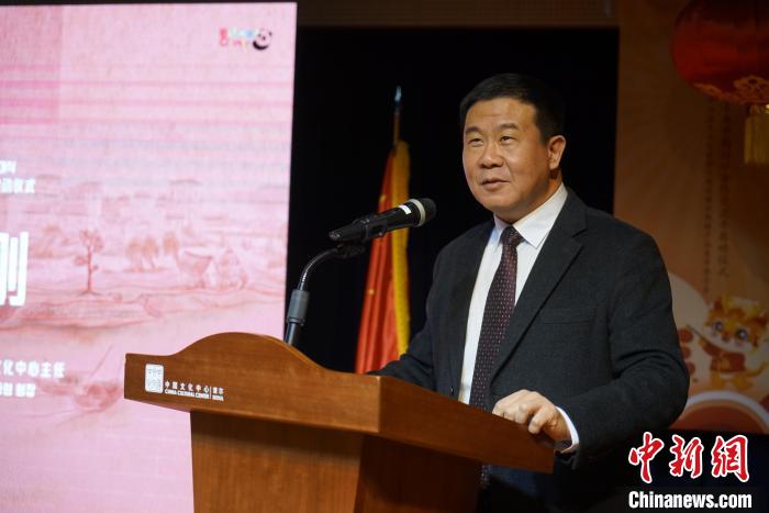圖為中國(guó)駐韓國(guó)使館參贊兼首爾中國(guó)文化中心主任沈曉剛致辭。劉旭 攝