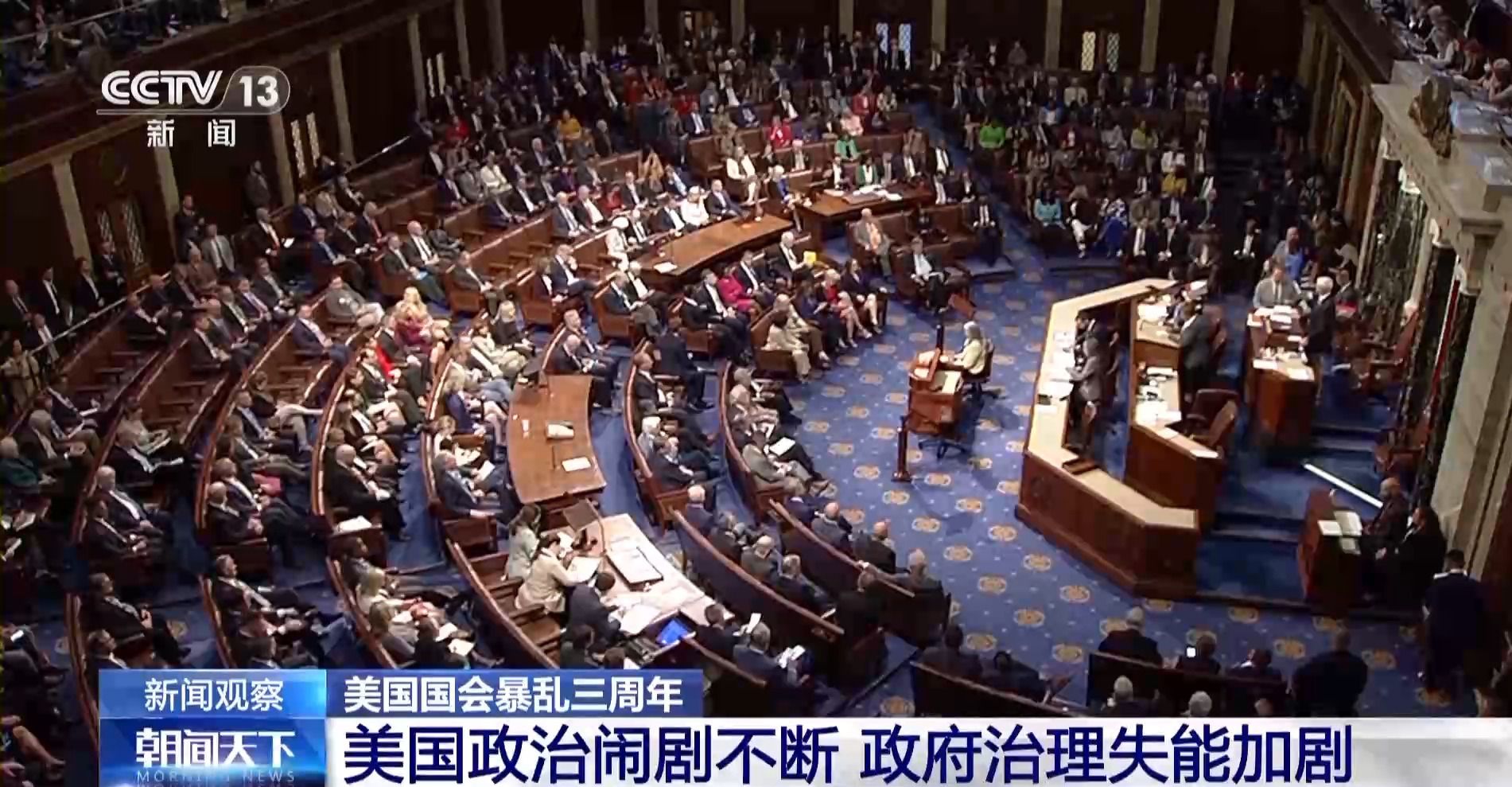 如今,美國國會(huì)暴亂事件已經(jīng)過去三年,國會(huì)大廈這一“美國政治的象征”成了美國民主、共和兩黨相互攻訐、上演一出出政治鬧劇的舞臺(tái)。在美國政治極化、黨爭加劇的環(huán)境下,美國經(jīng)濟(jì)社會(huì)議程遲滯,政府治理失能現(xiàn)象惡化,美國社會(huì)沉疴難愈。
