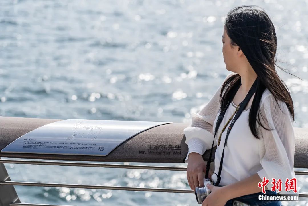 2024年1月14日,隨著電視劇《繁花》的熱播,香港尖沙咀星光大道上導(dǎo)演王家衛(wèi)的銘牌受到關(guān)注,成為游客打卡對(duì)象。侯宇 攝