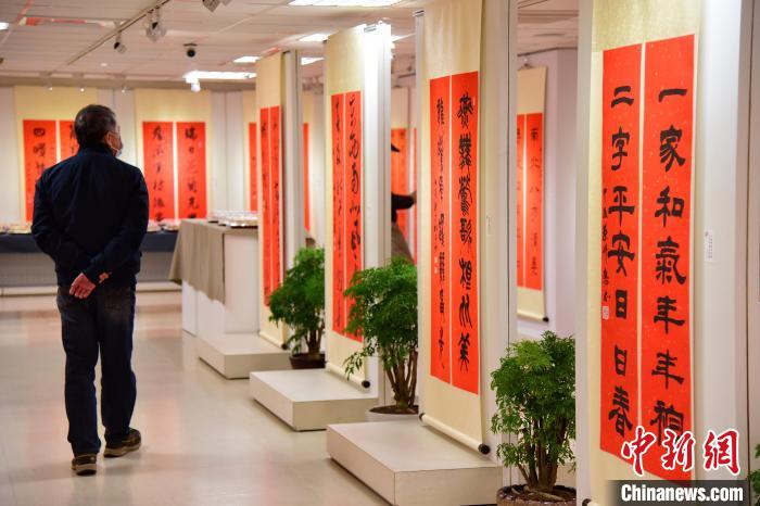 中新網(wǎng)臺(tái)北1月28日電 (記者 路梅)兩岸藝術(shù)家春聯(lián)展28日在臺(tái)北江山如此多嬌藝術(shù)館舉行,32位臺(tái)灣藝術(shù)家、13位大陸藝術(shù)家的90多幅作品參展。