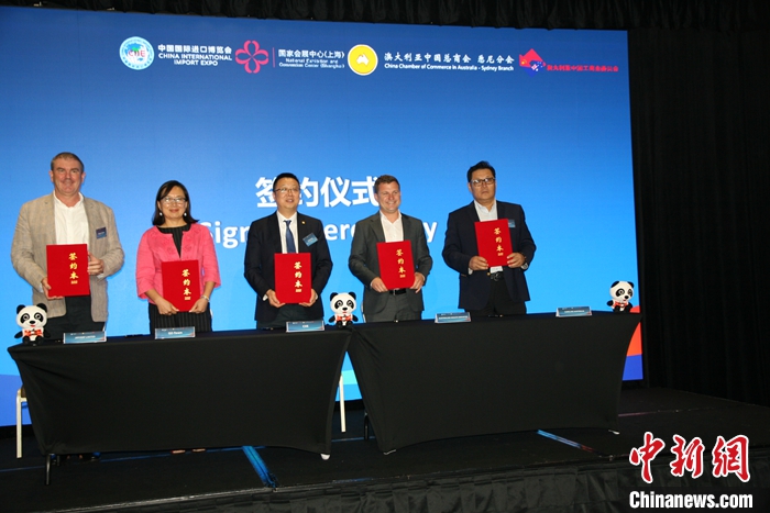 當(dāng)?shù)貢r間1月30日,第七屆中國國際進(jìn)口博覽會推介會在澳大利亞悉尼舉行。部分澳大利亞企業(yè)確認(rèn)參加第七屆進(jìn)博會并簽訂協(xié)議。 中新社記者 顧時宏 攝